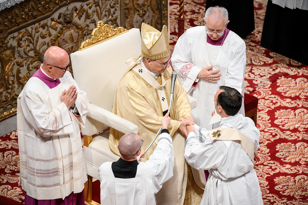 Sie traten einzeln vor den Papstthron vor dem Altar, wo Leo XIV. ihnen die Hände auflegte als Zeichen des Heiligen Geistes. Anschließend wurden die Neugeweihten in ihre priesterlichen Gewänder eingekleidet und traten erneut vor den Papst, der ihnen die Hände mit Chrisam, dem geweihten Öl, salbte. Danach umarmte er sie zum Friedensgruß und überreichte ihnen die Gaben Brot und Wein.