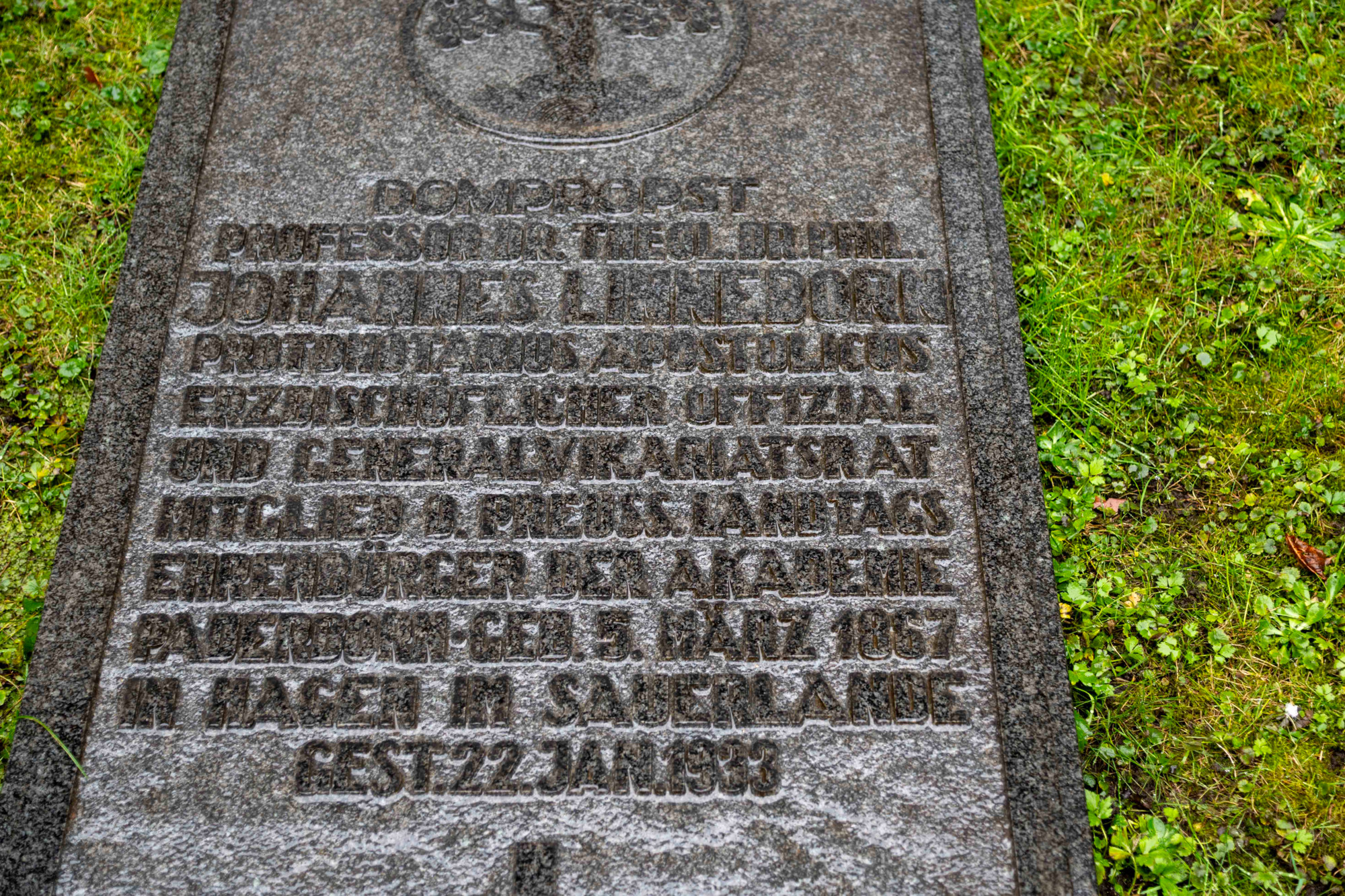 Am 5. März 1867 in Hagen bei Sundern im Sauerland geboren, studierte Johannes Linneborn nach seinem Abitur im Dreikaiserjahr 1888 am Gymnasium Theodorianum in Paderborn an der heutigen Theologischen Fakultät. 1892 wurde er im Hohen Dom zu Paderborn zum Priester geweiht. Nach seelsorglicher Tätigkeit im damaligen Ostteil des Bistums in Alsleben an der Saale und Gerbstedt (heute: Bistum Magdeburg) promovierte Johannes Linneborn in Münster zum Doktor der Philosophie und der Theologie. Seine Aufmerksamkeit galt der kirchlichen Rechtsgeschichte, insbesondere der Orden. Von 1910 bis 1919 und nochmals von 1921 bis 1922 übernahm er in Paderborn den Lehrstuhl für Kirchenrecht. Zudem arbeitete er im Paderborner Generalvikariat, der Verwaltungsbehörde des Bistums Paderborn, wirkte als Domkapitular, Offizial und später als Dompropst. Seit 1924 gehörte er als Abgeordneter des Zentrum dem Preußischen Landtag an. Johannes Linneborn starb am 22. Januar 1933. Sein Grab befindet sich auf dem Kapitelsfriedhof des Paderborner Domes, nördlich der Westfalenkapelle.
