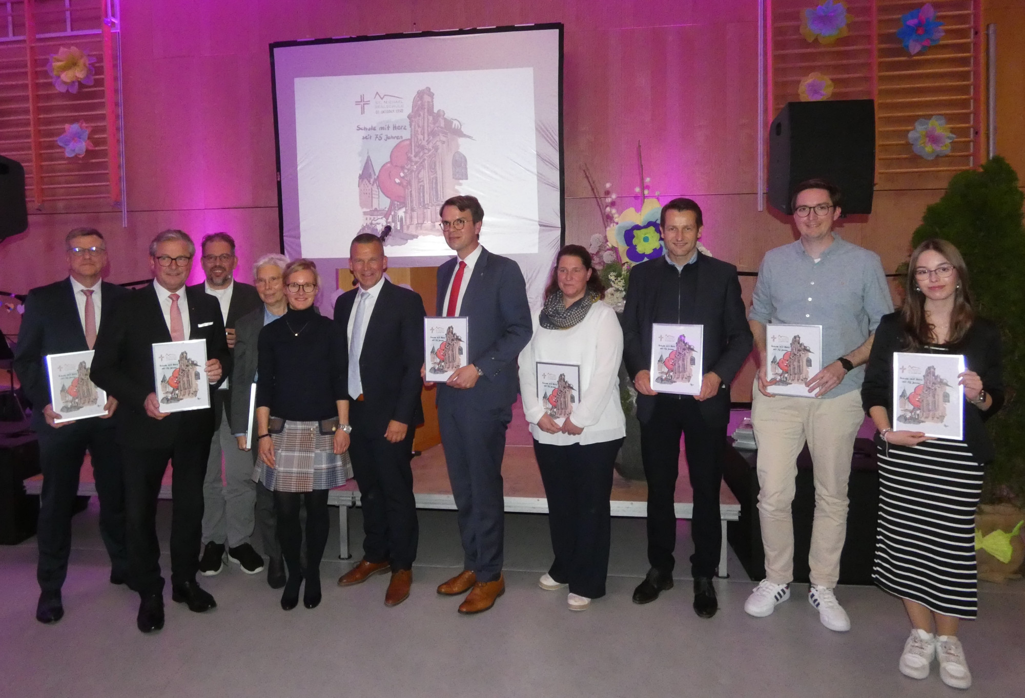 Nach Projekttagen und Schulfest für die Schulgemeinschaft rundet ein Festabend der Begegnungen mit zahlreichen Ehemaligen die ereignisreiche Festwoche der Realschule St. Michael zu ihrem 75-jährigen Bestehen ab.