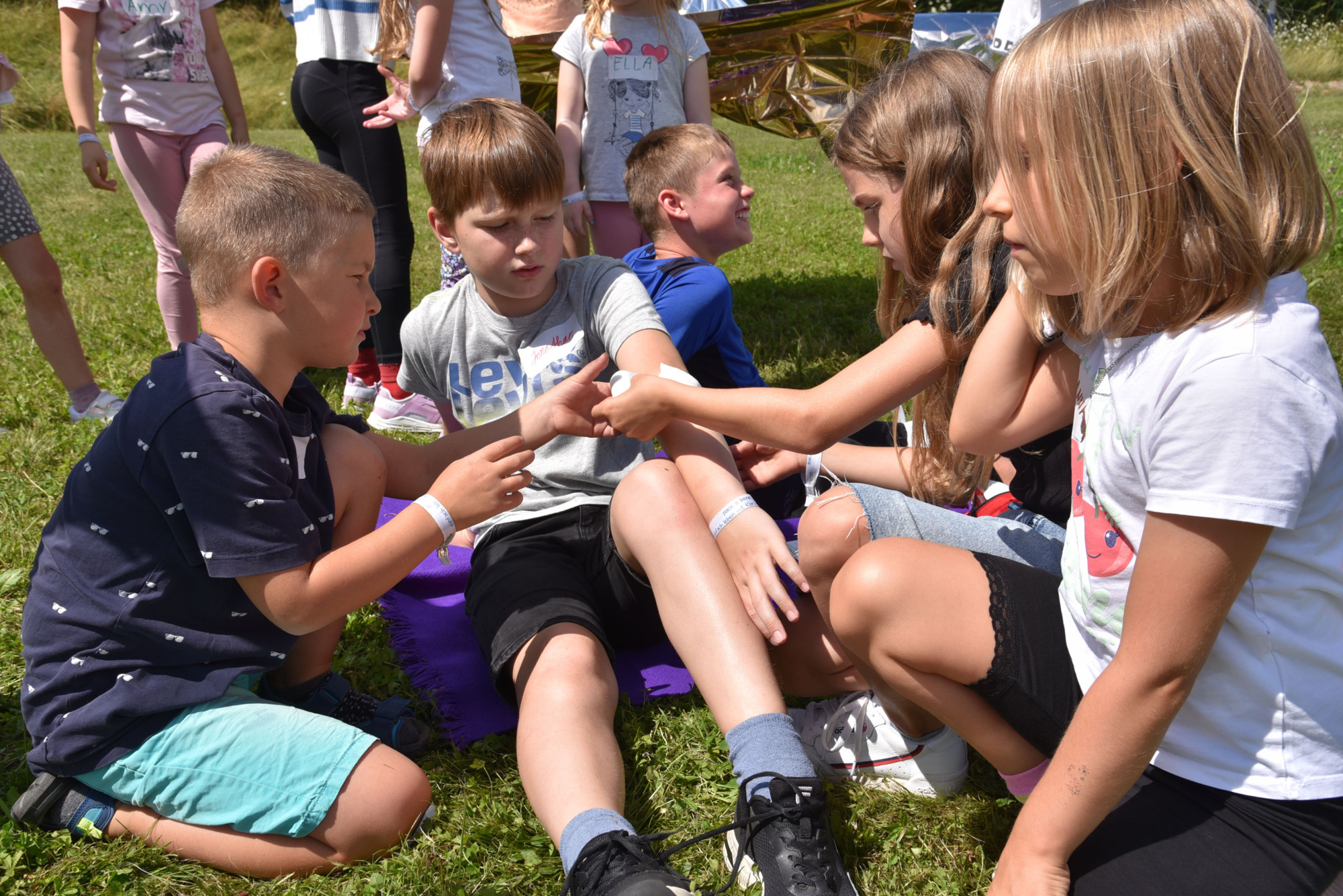 An drei Stationen eignen sich die Teilnehmenden Erste-Hilfe-Kenntnisse an. Nur auf den ersten Blick Programmpunkte, die wenig mit Klara und Franz zu tun haben, erläutert Thomas Rhode, seit vier Jahren Gemeindereferent in der Pfarrei St. Matthäus, zu der die Gemeinde in Rohrberg gehört: „Franz und Klara haben sich um Bedürftige gekümmert sowie diese gepflegt. Auf der anderen Seite Teambuilding-Maßnahmen: Gemeinsam etwas schaffen, ob es Dosenwerfen oder Wikingerschach ist. Denn auch Klara und Franz mussten nicht allein wirken, sie gründeten Orden, denen sich viele Menschen anschlossen.“