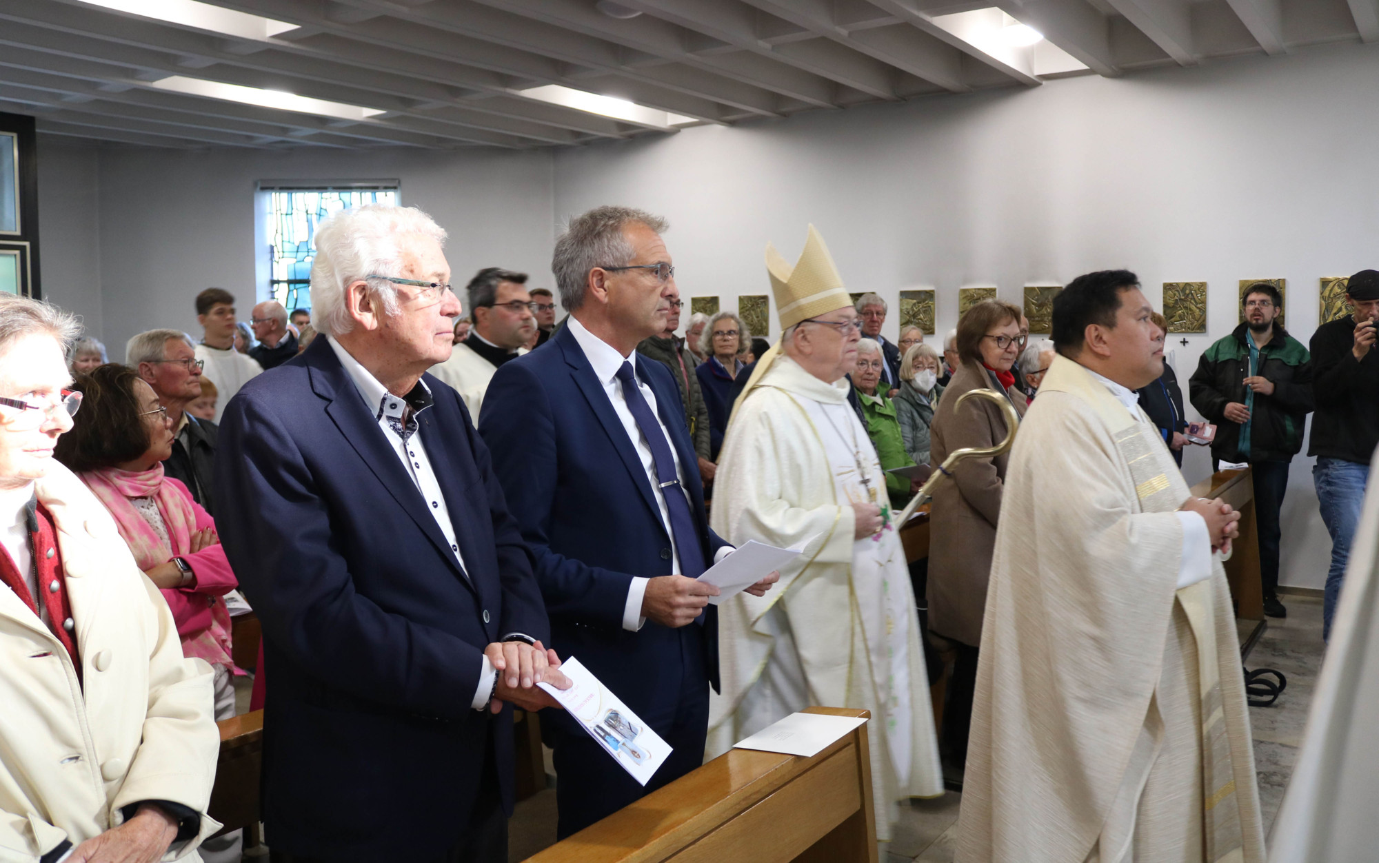 Weiterhin kamen in der Predigt eingängige Bilder zur Sprache: „Durch uns selbst und die Art und Weise, wie wir miteinander leben und umgehen, durch unsere Augen, Hände und Füße, soll durch uns erfahrbar werden: wer Gott ist und wie Gott zu uns Menschen ist. Das ist der synodale Stil, den Papst Franziskus immer neu für unsere Kirche einfordert, dieser Mut zum Konkreten und Erfahrbaren“, zitierte Erzbischof em. Hans-Josef Becker die Predigt seines Amtsnachfolgers.