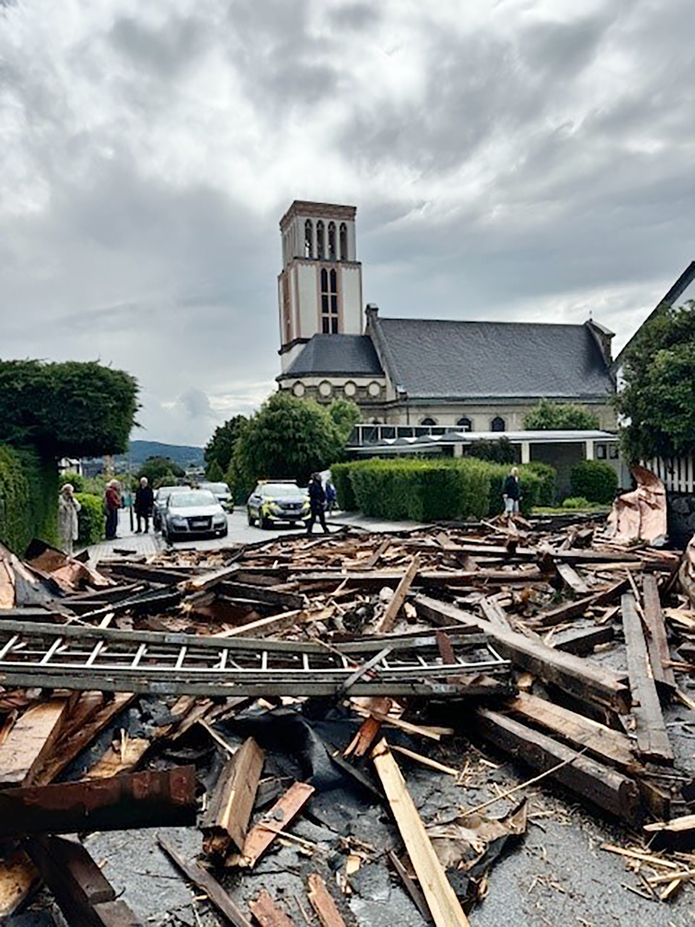 Schwerer Sturm zerstört Kirchturm in Hagen