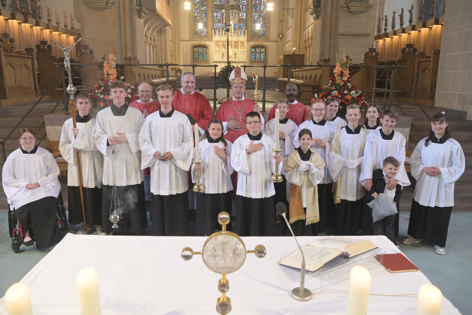 Für Weihbischof Matthias König ist die Begegnung und Arbeit mit Messdienerinnen und Messdienern ein Herzensanliegen. Deshalb lädt er immer wieder Ministrantinnen und Ministranten dazu ein, bei seinen Gottesdiensten im Hohen Dom zu Paderborn mitzuwirken und in der Bischofskirche des Erzbistums Paderborn ihren wertvollen „Altar-Dienst“ zu leisten. Bei der diesjährigen Erwachsenenfirmung nahmen auch Messdienerinnen und Ministranten aus Büren, Höxter, Lippling, Lippstadt, Lügde, Schloss Neuhaus und Westerwiehe teil. „Der Einsatz der Mädchen und Jungen kann nicht hoch genug geschätzt werden, er berührt mich immer wieder. Wenn die jungen Menschen durch ihren Dienst einen Gottesdienst mitgestalten und so ihren Glauben ausdrücken, dann ist das eine Einladung für andere, sich ebenfalls einzubringen“, unterstreicht Weihbischof König.