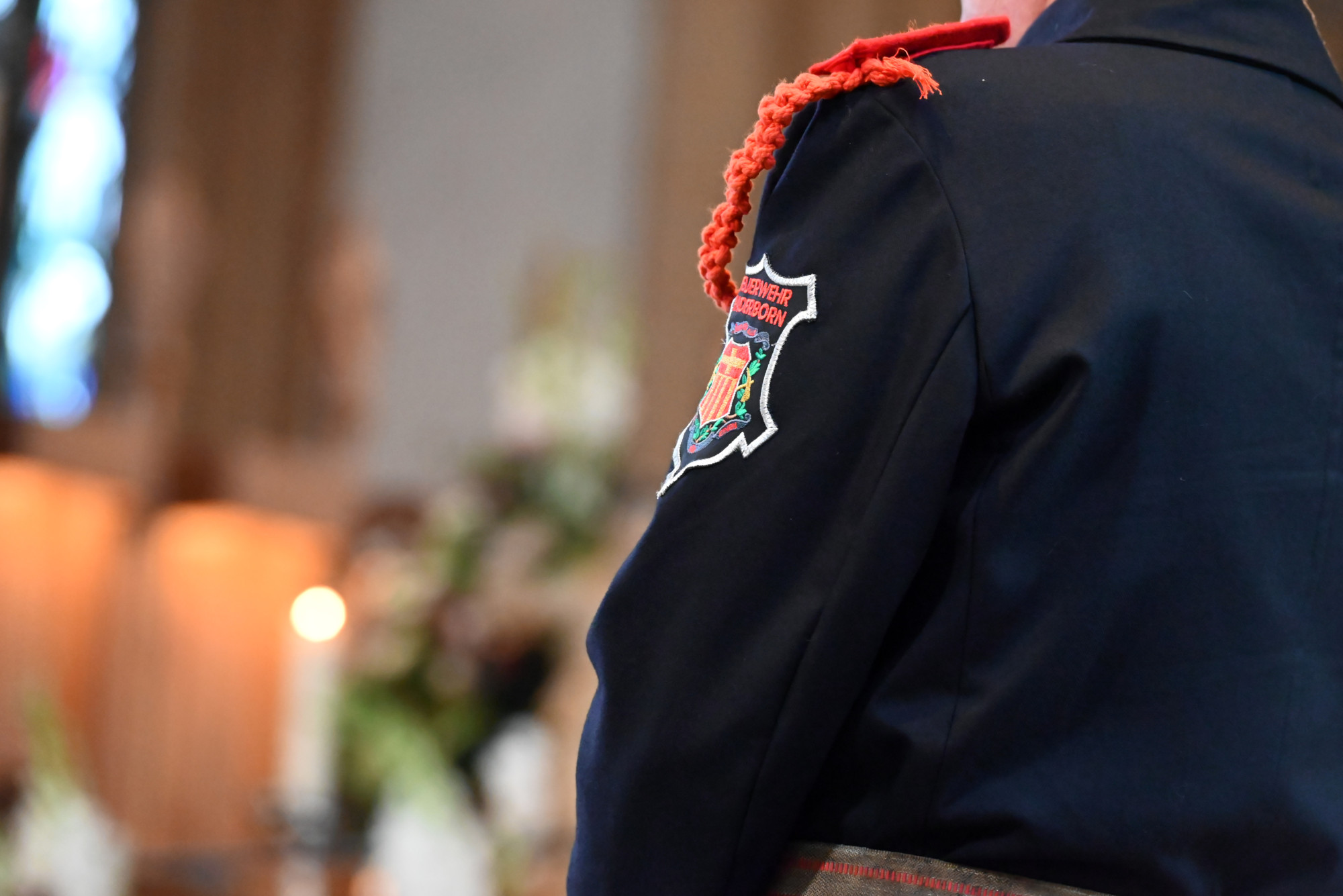 Das Ende der Heiligen Messe markierte auch das Ende einer kleinen Ära: Der Leiter der Feuerwehr Paderborn, Branddirektor Ludger Schmid, verabschiedete Pastor Peter Scheiwe, der selbst aktiver Feuerwehrmann war, nach 17 Jahren aus dessen Amt als „Fachberater Seelsorge der Feuerwehr der Stadt Paderborn“. „Du hast Beruf und Berufung vereint, auch in deiner Aufgabe in der Feuerwehr- und Notfallseelsorge. Wir freuen uns, dass du uns auch weiter deine Unterstützung zugesagt hast, wenn auch nicht mehr im formellen Amt“, dankte der Branddirektor.
