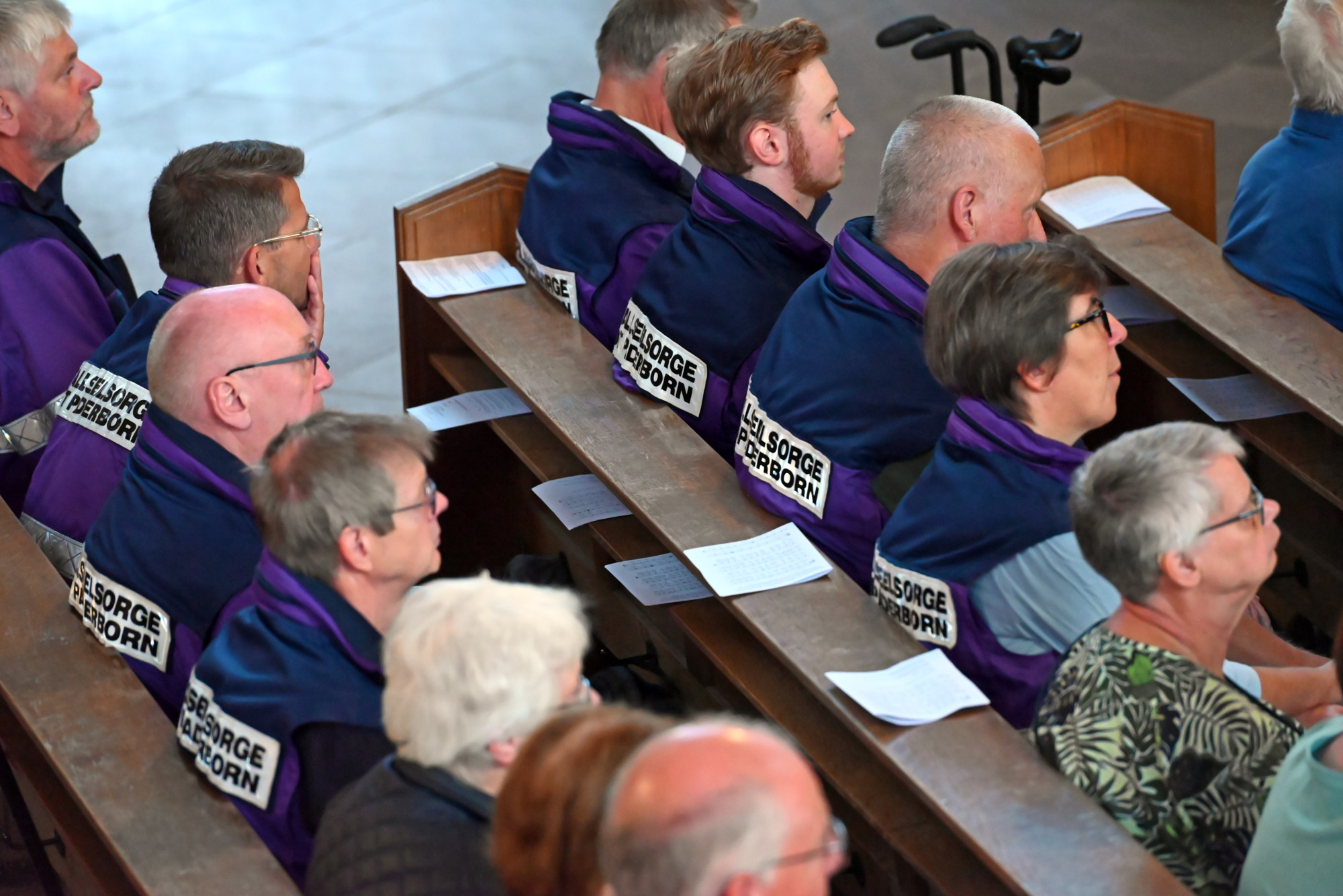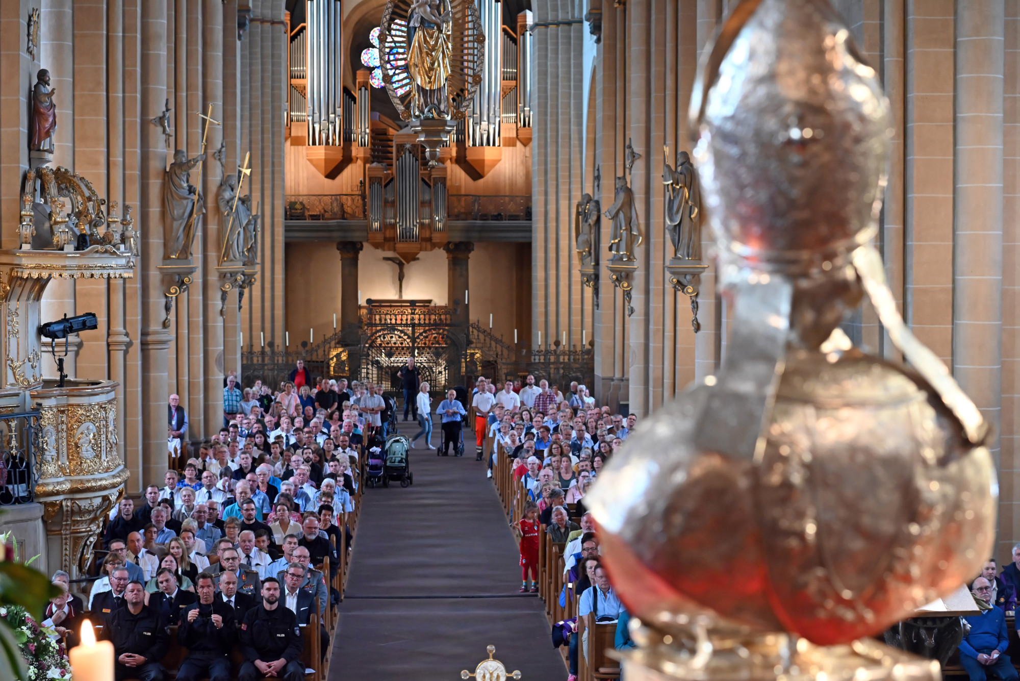 Mit 60 Sängern bereicherte der Polizeichor Paderborn unter der Leitung von Frank Bodemeyer den Gottesdienst stimmgewaltig. Christian Nolden spielte an der Domorgel.