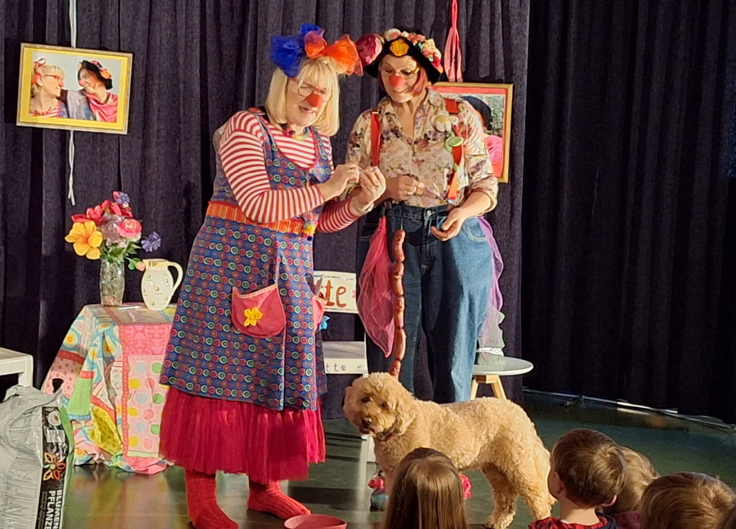Wie lassen sich Themen wie Tod, Sterben und Trauer kindgerecht und einfühlsam darstellen? In ihrem Theaterstück „Was ist nur mit Herrn Lehmann los?“ geben die Clowninnen Ulli Sonderhüsken und Sylvie Blätgen, unterstützt durch Hund Motte, am Samstag, 27. September, eine Antwort. In dem Stück erfahren Motte, Totte und Trulla auf einer fröhlichen Geburtstagsfeier plötzlich vom Tod von Herrn Lehmann. Sie sind traurig und haben viele Fragen: Wie geht Beerdigung? Können die drei überhaupt selbst etwas tun? Wohin mit all ihrer Trauer? Wird das jetzt immer so bleiben?