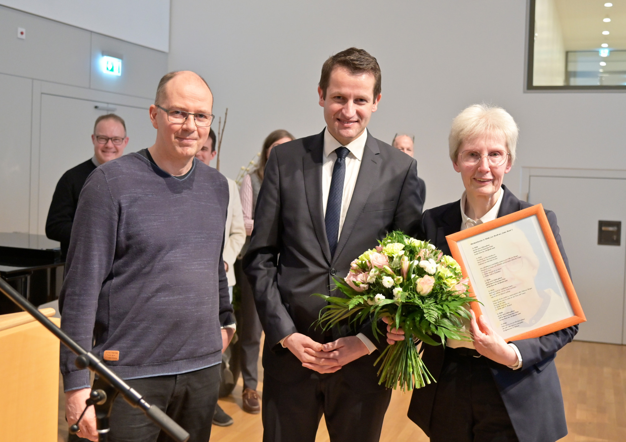„Du bist die letzte Ordensschwester, die austritt aus dem Schulorchester“: Eine besondere Form für seine Laudatio hatte Schulleiter Claudius Hildmann gewählt – nämlich durchweg makellose Reime. In dieser besonderen karnevalistischen Kunstform hob Hildmann mit heiteren, aber auch ernsten Gedanken nicht nur die große Bescheidenheit der Laudatierten hervor, sondern auch ihr Verantwortungsbewusstsein, ihr Pflichtgefühl, ihren Fleiß und ihre Demut. Sr. Ulrike habe nicht nur gelehrt, sondern mit dem Herzen ihre Aufgabe gelebt – „mit Liebe und aus Liebe“, erklärte Hildmann. „Der Orden konnte keine Bessere entsenden“, zeigte sich der Schulleiter überzeugt.