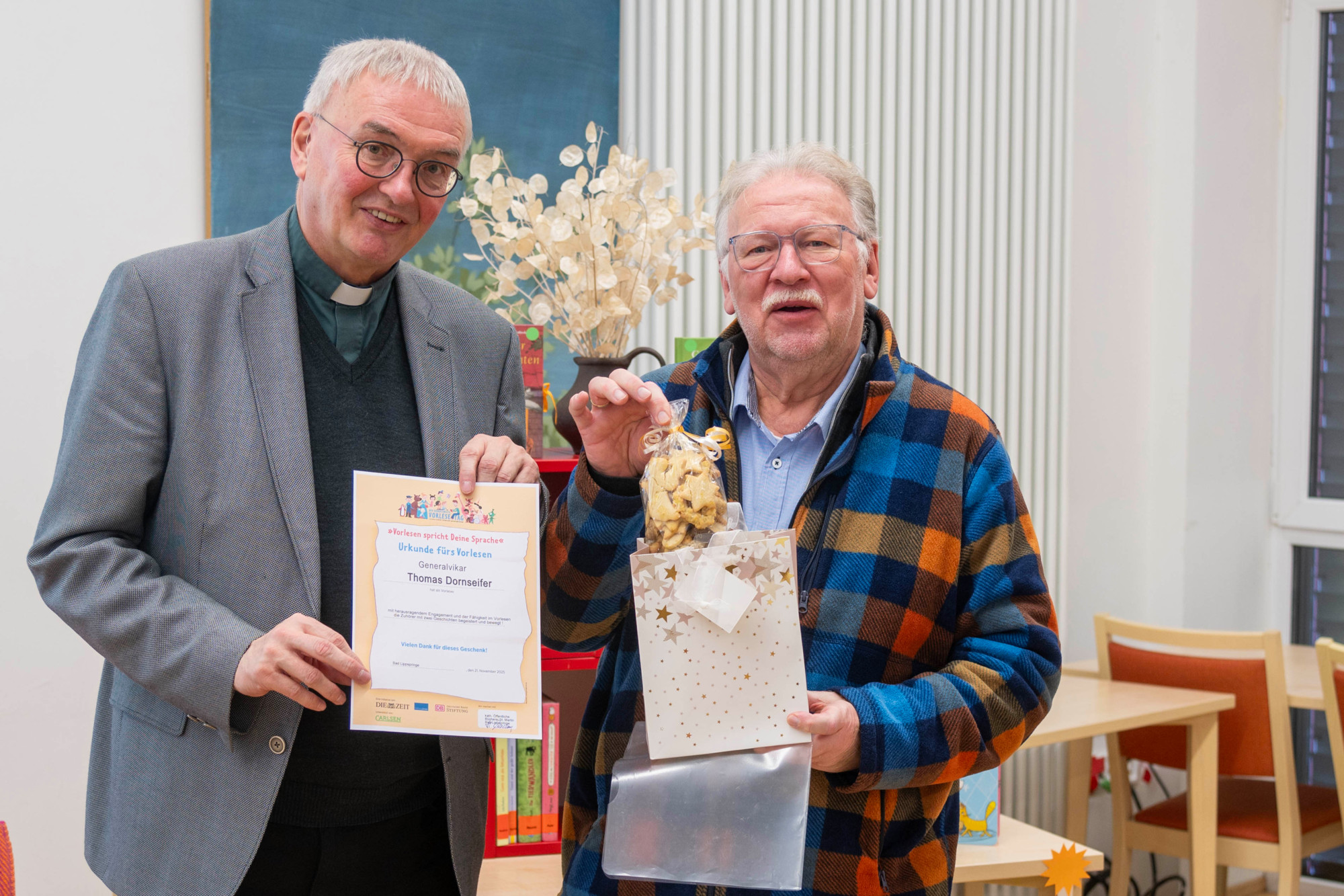 Der Bundesweite Vorlesetag am 21. November führte Thomas Dornseifer in die Katholische Öffentliche Bücherei (KÖB) der Pfarrei St. Martin in Bad Lippspringe. Dort wurde der Generalvikar bereits vom ehrenamtlichen Büchereiteam, aber insbesondere von Kindern und ihren Eltern erwartet. Die Tätigkeit von Generalvikar Dornseifer in der Bücherei St. Martin unterschied sich fundamental von seiner sonstigen Arbeit als Leiter des Erzbischöflichen Generalvikariats, der Verwaltungsbehörde des Erzbistums Paderborn: Er wirkte als Lese-Pate und las aus aktuellen Bilderbüchern vor, um so den Bundesweiten Vorlesetag prominent zu unterstützen und beim größten „Vorlese-Fest“ in Deutschland aktiv dabei zu sein.