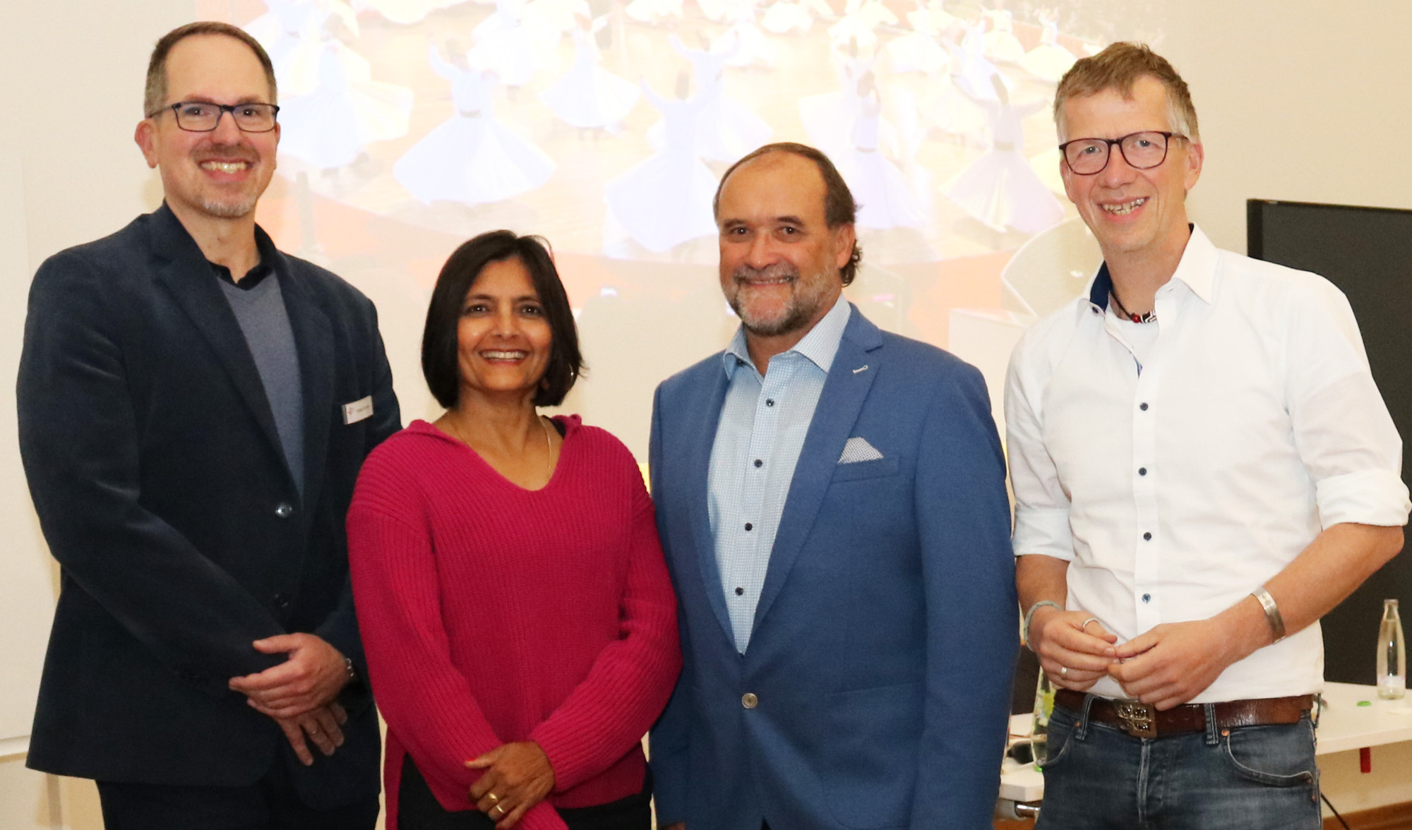 Im Zentrum stand der weltweit bekannte Sufi-Mystiker Rumi und damit auch der Sufismus als „mystische Ausprägung des Islam“. Gleich zu Beginn stellte Dr. Dr. Michael Gmelch eine entscheidende Frage: „Warum beschäftigt sich ein katholischer Priester mit einem islamischen Mystiker, der vor über 750 Jahren verstorben ist?“ und gab im Rahmen seiner Ausführungen die Antwort: „Weil der interreligiöse Dialog mir eine Herzensangelegenheit ist und wir im Miteinander viel voneinander lernen können, um Frieden zu erreichen.“