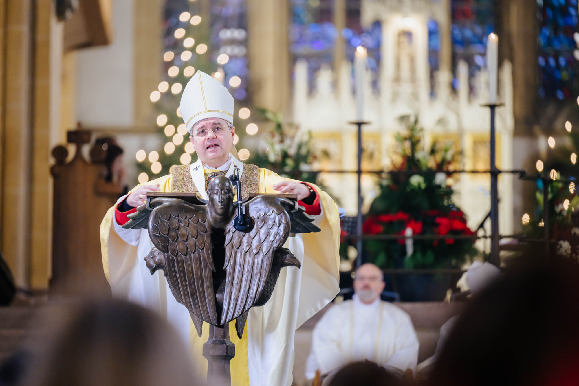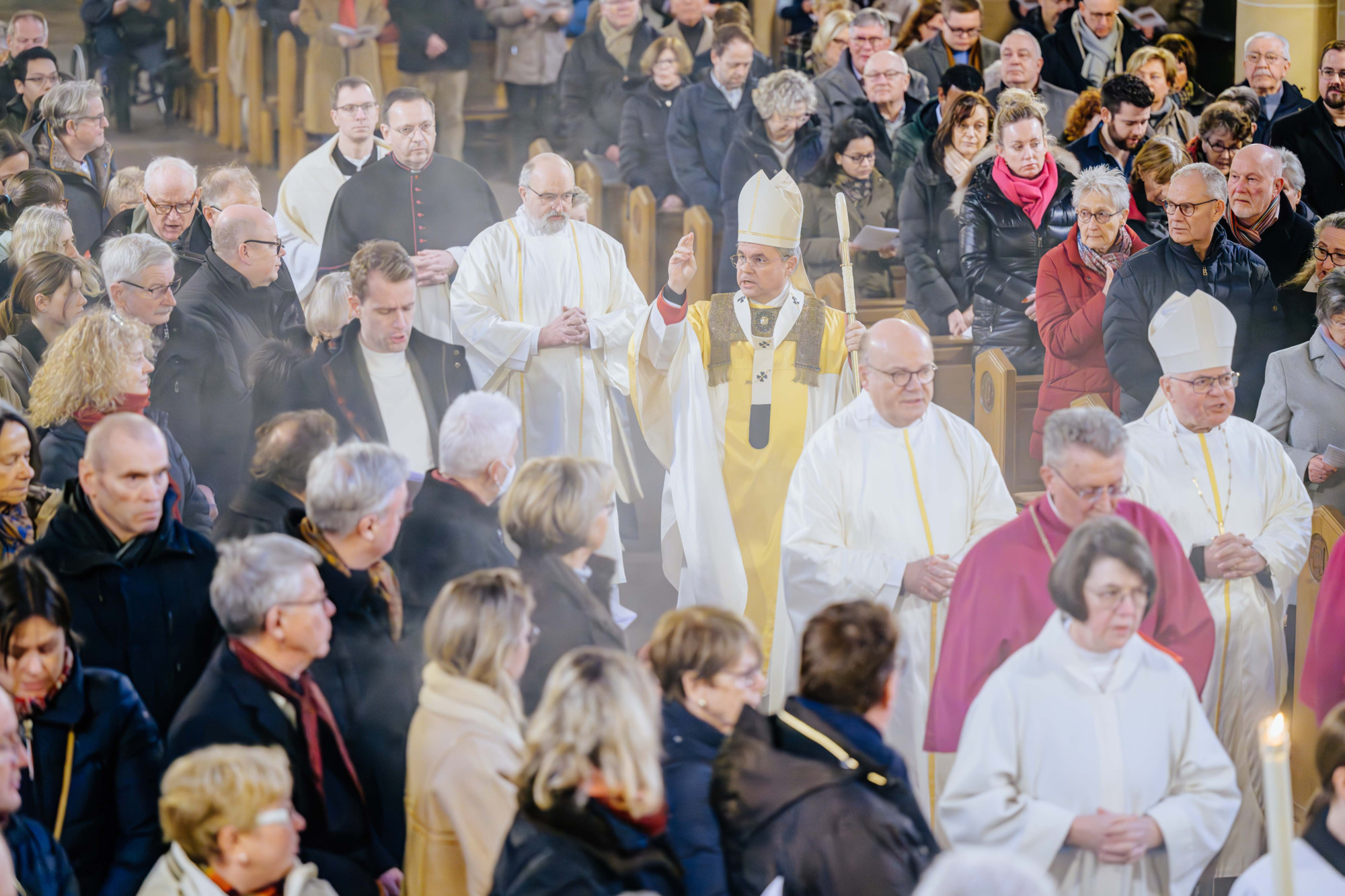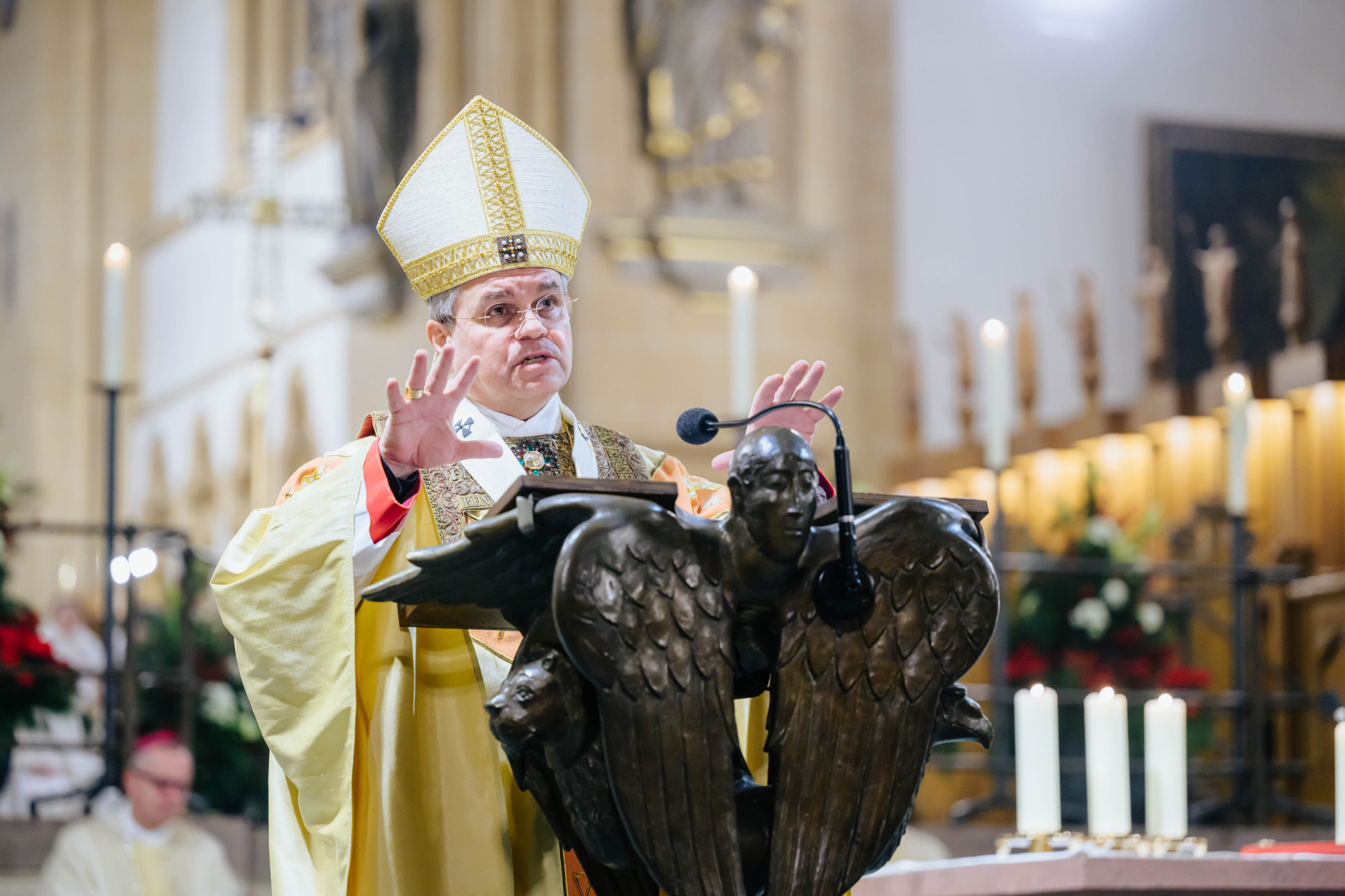 „Das ist unsere Würde als ‚weihnachtliche Menschen‘: aus Gott geboren, mit seinem Wort reden und aus seinem Geist handeln“, erklärte Erzbischof Dr. Udo Markus Bentz zum Abschluss seiner Predigt. „So wirken wir mit an der neuen Wirklichkeit. Wir werden daran glauben müssen, dass unsere Zukunft anders aussehen kann als die, die Krieg und Gewalt, Krise und Verunsicherung derzeit vorhersagen. Das Wort der Engel gilt: ‚Fürchtet euch nicht!‘. Nicht der Hass, sondern Gott hat das erste und das letzte Wort.“ Erzbischof Dr. Bentz bekräftigte: „Es liegt an uns“, dass Gottes Wort – „Die Welt ist mir nicht egal. Du, Mensch, bist mir nicht egal! Ich bin da! Ich will, dass Du lebst!“ – unter den Menschen Gültigkeit habe.