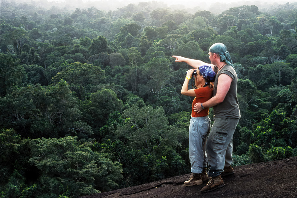 So faszinierend die Natur der Regenwälder auch ist, zu den tiefsten Eindrücken zählen für Sandra und Dieter ihre Begegnungen mit Menschen. In West-Malaysia verbrachten sie mehrere Wochen bei den Orang Aslis, den Ureinwohnern einer einst waldreichen Region. Ihre Siedlung liegt in einem abgelegenen Tal des Taman-Negara-Nationalparks. „Sandra und ich können uns nicht erinnern, jemals so enthusiastisch begrüßt worden zu sein. Unser Zelt durften wir nicht aufbauen, schließlich waren wir Gäste. In einer Hütte hatten die Orang Aslis bereits einen Bereich für uns mit Tüchern abgetrennt.“ Auch mit einigen indigenen Völkern vom Volk der Trios!s in Surinam verbindet die beiden eine Freundschaft. Sie alle seien extrem offen und gastfreundlich. Oft durchstreiften sie mit ihnen die entlegensten Regionen und lernten bei jedem Schritt dazu.