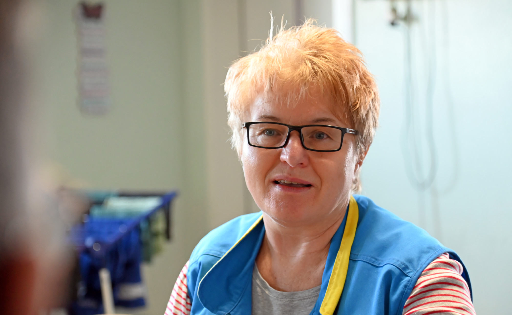 49 Ehrenamtliche sind bei der Dortmunder Bahnhofsmission aktiv. Einer von ihnen ist Reinhard Raschke. Der pensionierte Grundschullehrer ist seit sieben Jahren dabei. Über die Dortmunder Freiwilligenagentur hat der 71-Jährige den Kontakt gefunden. So wie alle Mitarbeiterinnen und Mitarbeiter trägt er die blaue Weste mit dem Emblem der Bahnhofsmission auf dem Rücken. Neben der Arbeit in den Räumen an Gleis 2–5 gehören auch die „Runden durch den Bahnhof“ als Zweier-Team zu den Aufgaben.