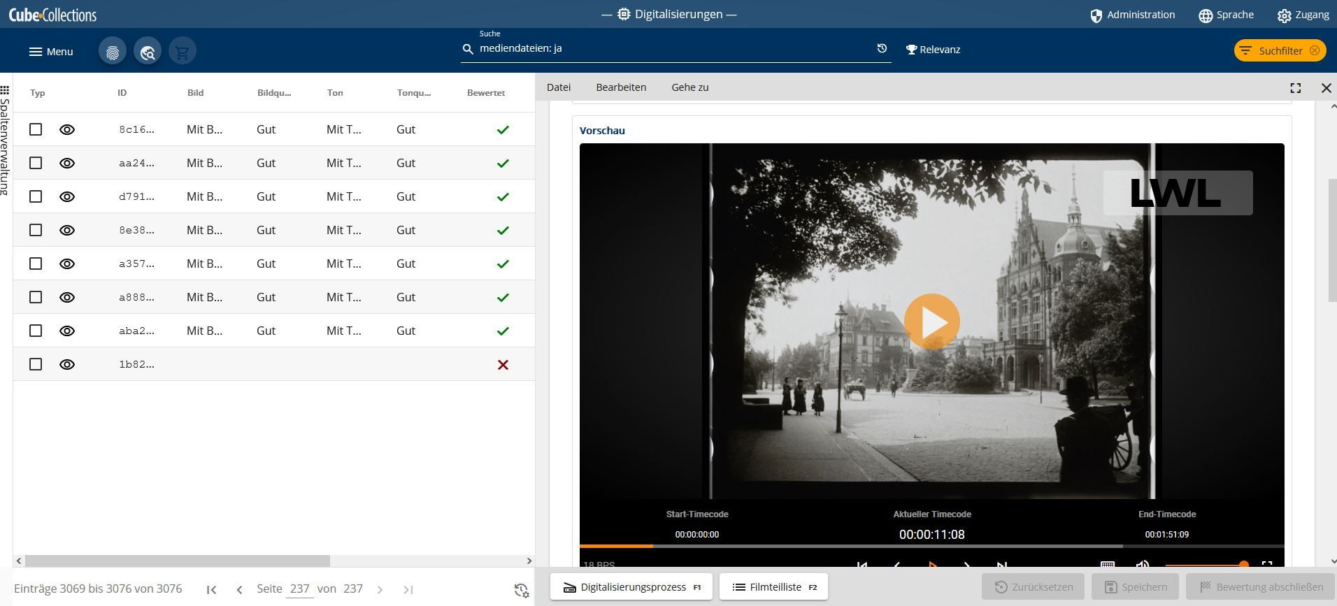 Der Landschaftsverband Westfalen-Lippe (LWL) hat im Bild-, Film- und Tonarchiv seines LWL-Medienzentrums für Westfalen das neu entwickelte Media-Asset-Managementsystem „Cube Collections“ in Betrieb genommen. Das neue System automatisiert viele wichtige Arbeitsschritte beim Speichern und Erhalten von Ton- und Filmdateien. Für Nutzende des Filmarchivs wird die Recherche und Bestellung mit der zum System gehörenden neuen Online-Datenbank in Zukunft komfortabler.