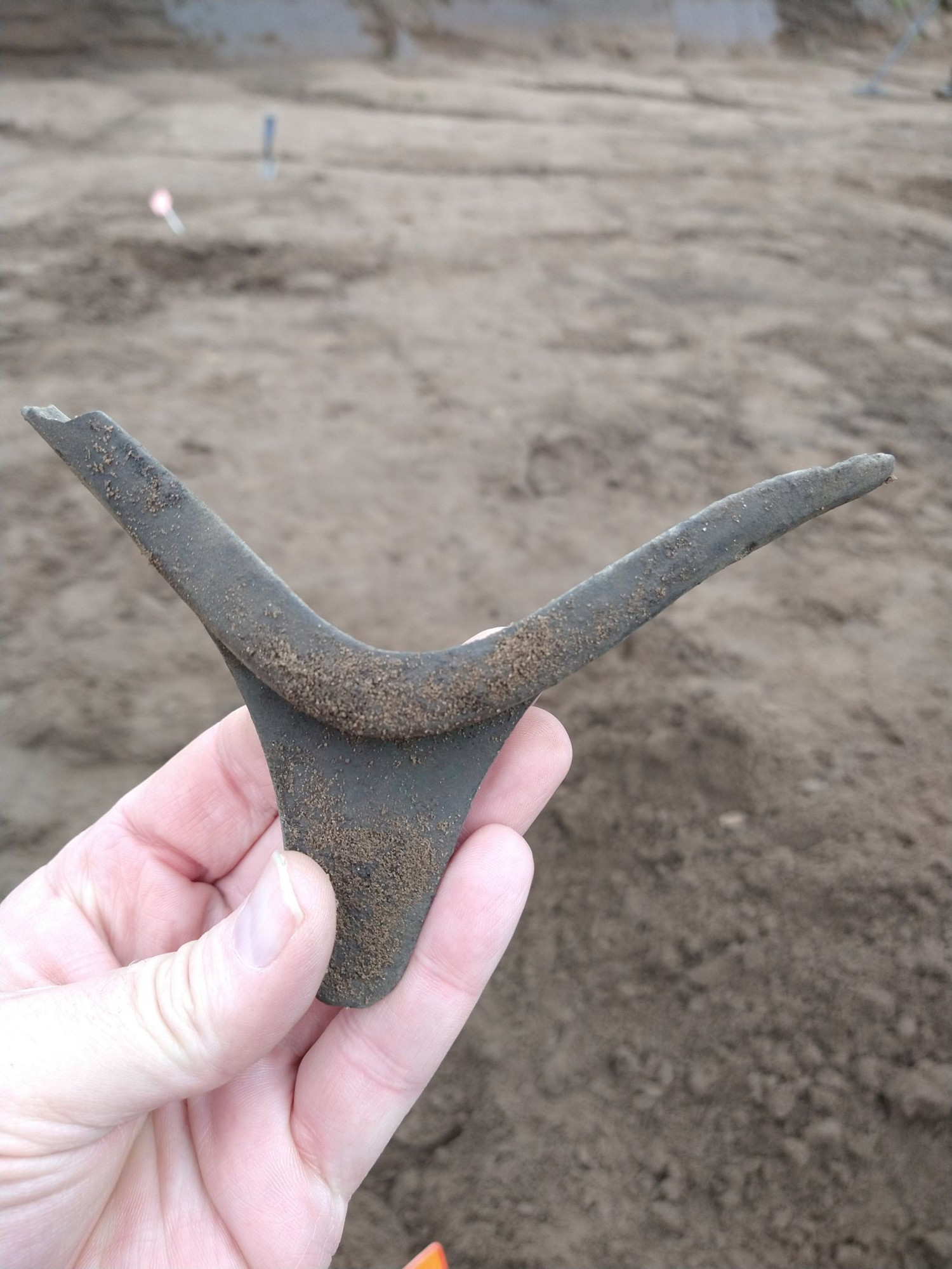 Ein weiterer Hinweis auf eine frühe Datierung stellt ein Schuhnagel dar, den wahrscheinlich ein römischer Legionär hier vor 2.000 Jahren verloren hat. Die genaue Datierung dieses Nagels wird sich allerdings erst nach der Restaurierung klären. Die Frühdatierung der neu entdeckten Hofstelle klärt sich allerdings erst, wenn die Keramik geborgen, gereinigt und ausgewertet ist. Vorläufig deuten die bisherigen Funde aber an, dass der Platz über einen längeren Zeitraum oder mit Pausen mehrfach innerhalb der ersten Jahrhunderte n. Chr. besiedelt wurde.