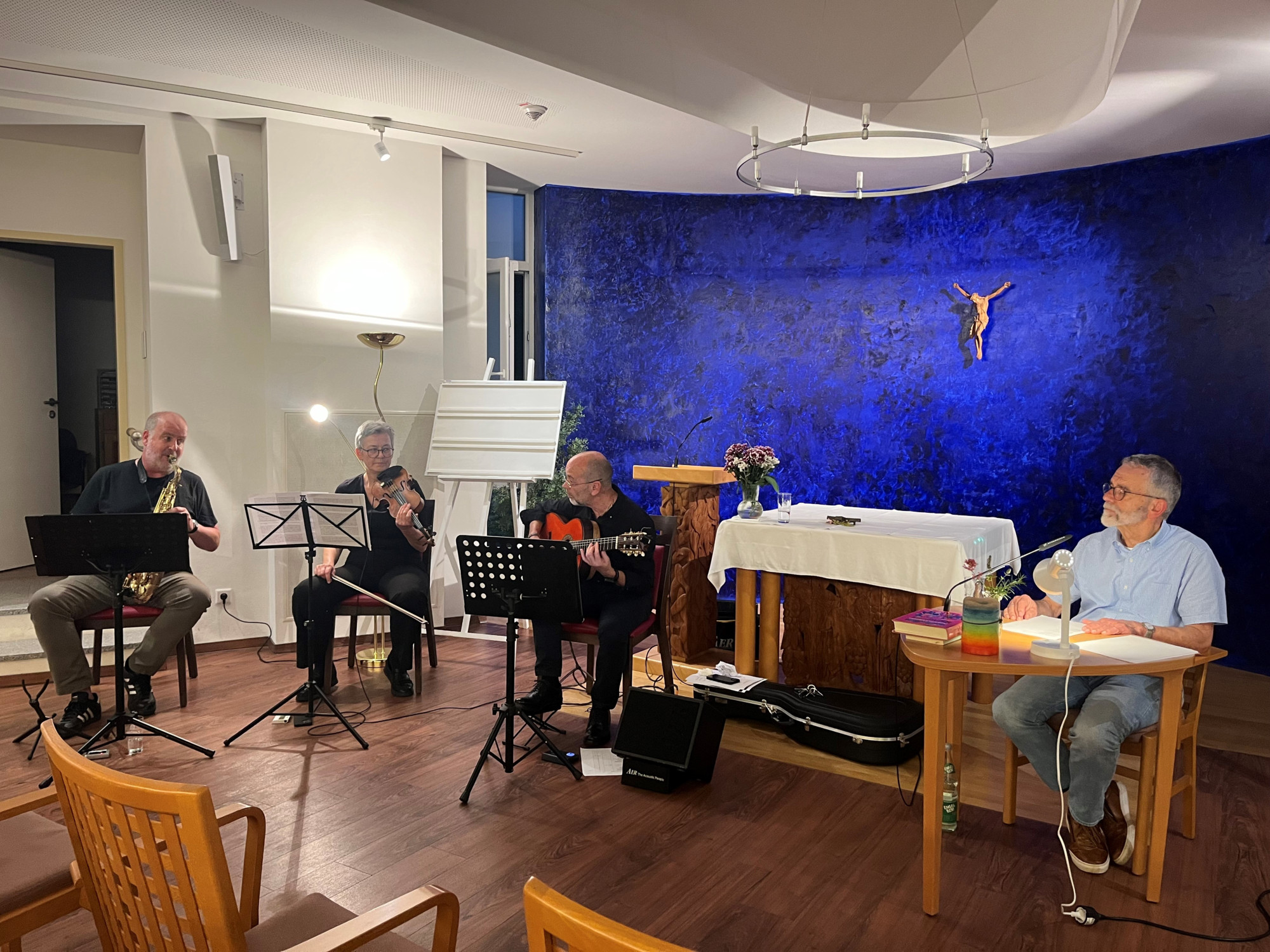 Musikalisch sorgten Mechthild Hendricks (Geige), Jürgen Clemens (Saxophon) und Vitali Kellermann (Gitarre) für Gänsehautmomente. Ihre fein abgestimmte Auswahl stimmungsvoller Stücke rundete die Lesung harmonisch ab. „Die Musik und die Texte haben sich gegenseitig getragen – ein wunderbares Zusammenspiel“, lobte ein Gast begeistert.