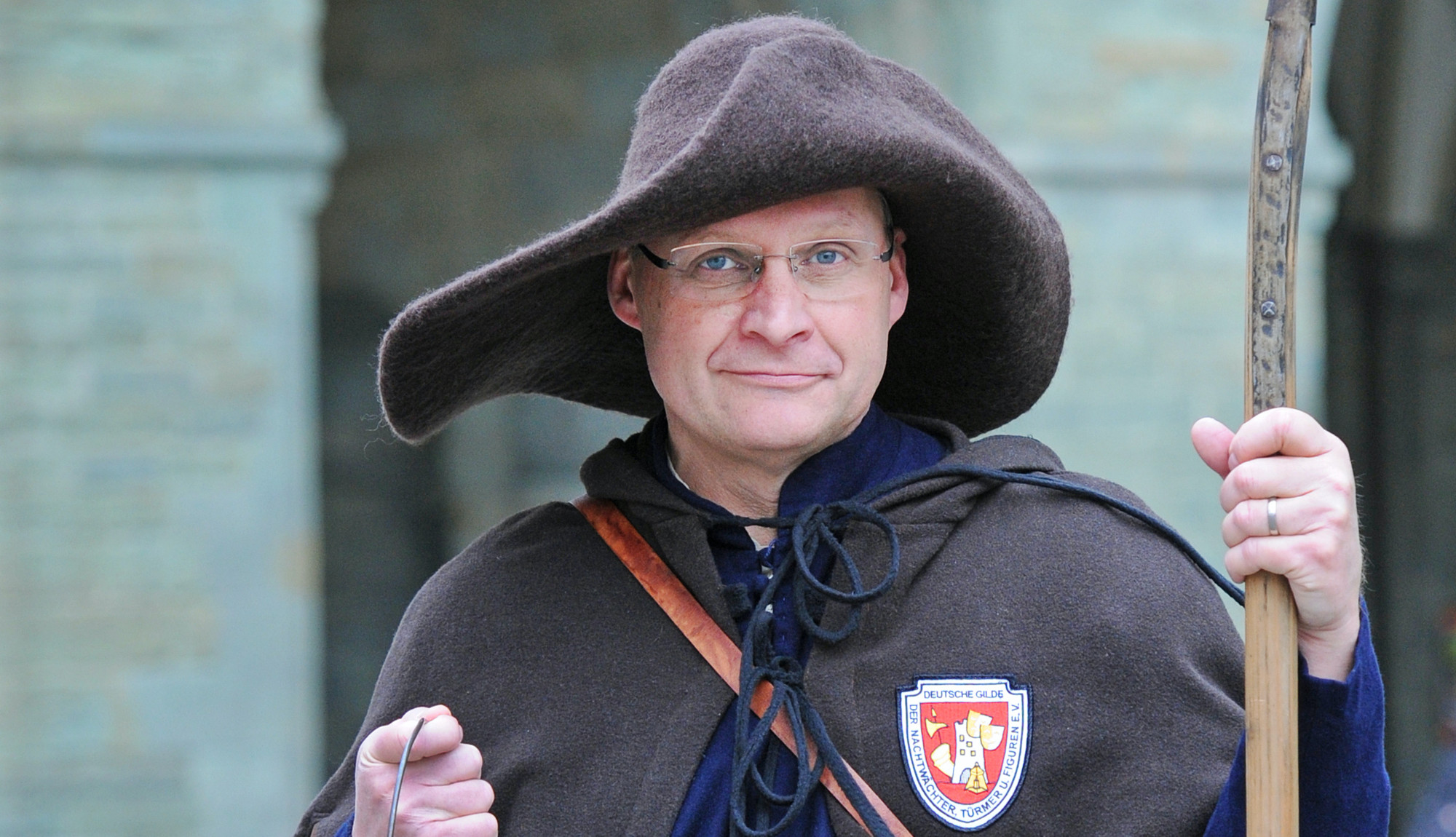 Wenn ich mein Gewand anlege, verkleide ich mich nicht, sondern ich schlüpfe in eine Rolle, die ich so wirklichkeitsnah wie möglich ausfülle. Aus diesem Grund bin ich auch Mitglied der Deutschen Gilde der Nachtwächter, Türmer und Figuren. Diese Gemeinschaft hat es sich zum Ziel gesetzt, Überliefertes zu bewahren, Brauchtum zu pflegen und Geschichte weiterzugeben.