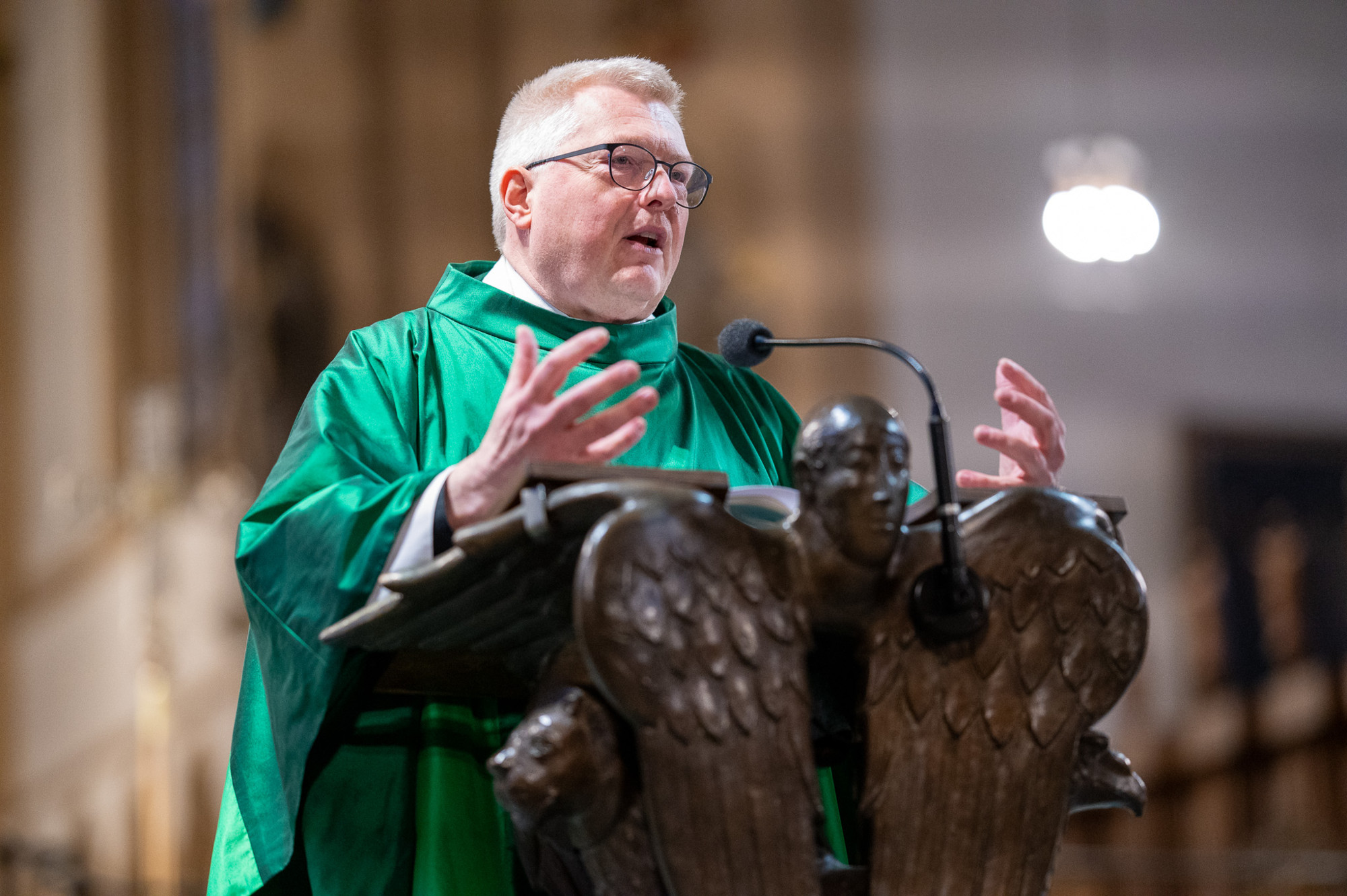 „Was tun Religionslehrerinnen und -lehrer, damit ein Kind das Beste aus seiner Schulzeit herausholt? Was tun sie, damit ein Kind etwas erfährt über die Hoffnungsperspektive des eigenen Lebens?“, fragt Generalvikar Dr. Michael Bredeck die Missio-Anwärterinnen und Anwärter zu Beginn seiner Predigt. Hoffnung – das bestimmende Thema des Heiligen Jahres, das seinen Anfang mit dem bevorstehenden Weihnachtsfest nimmt – möge, so der Generalvikar, auch die Religionslehrenden auf ihrem künftigen Weg begleiten. „Ich wünsche mir für Sie, dass Sie diese ‚Hoffnung‘ in Ihre neue Tätigkeit einfließen lassen – für sich und Ihre Schülerinnen und Schüler. Die Frage, die Sie antreiben soll, lautet: ‚Wie können Sie dazu beitragen, dass Kinder durch den Religionsunterricht etwas Hoffnungsvolles erleben und dadurch hoffnungsvolle Perspektiven für ihr Leben gewinnen?‘“, betont der Generalvikar. „Ahmt auch ihr mich nach, Brüder und Schwestern, und achtet auf jene, die nach dem Vorbild leben, das ihr an uns habt!“, zitiert Generalvikar Dr. Michael Bredeck die vorangegangene Lesung und fragt die Religionslehrenden: „Können und wollen auch Sie ein Vorbild sein?“